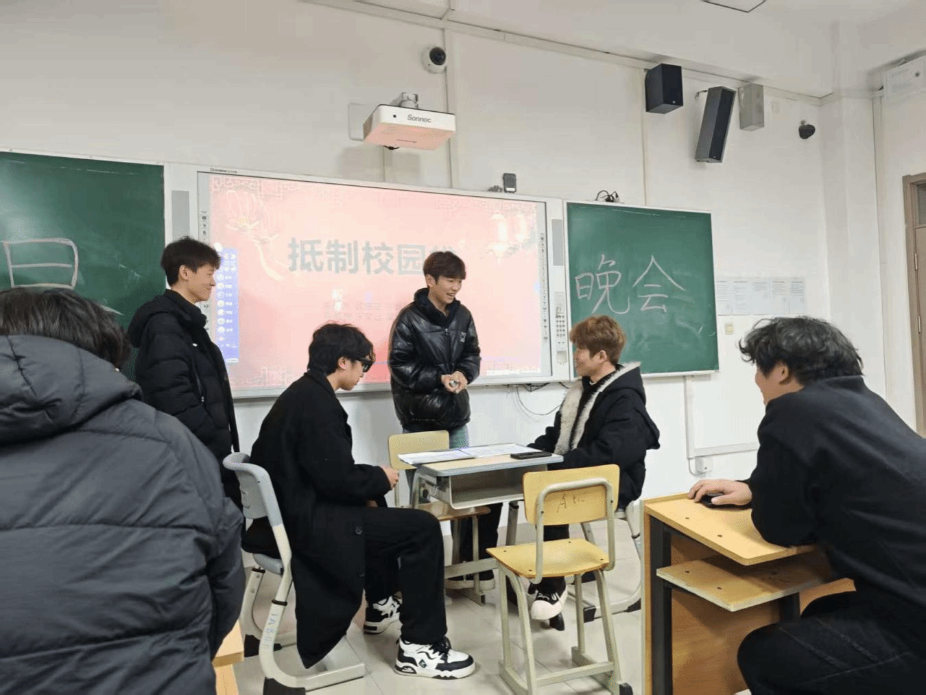 本次晚会节目形式多样、内容丰富,可谓亮点纷呈、高潮迭起。动感十足的歌曲演唱点燃全场热情,青春旋律随节奏肆意飞扬,展现了同学们蓬勃向上的精神风貌。创意十足的小品表演包袱频出、妙语连珠,凭借幽默的情节和生动的演绎,引得台下笑声阵阵、掌声雷动。深情婉转的乐器吹奏以乐传情,悠扬的旋律缓缓流淌,温暖了冬日夜晚的每一寸时光。每个节目都凝聚着表演者的汗水与用心,既展现了同学们的多才多艺,也为班级文化增添了绚烂色彩。