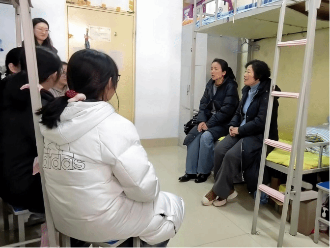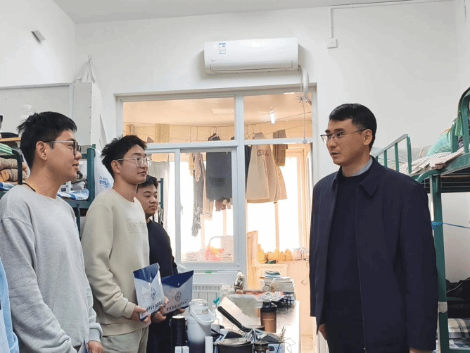 巩磊和曹晓荣分别带队走进考研学生宿舍,与考研学子亲切交流,细致询问他们的复习状态、生活需求,耐心疏导考前心理困扰,并送上考研大礼包。他们用亲切的话语与务实的行动传递学院的牵挂。此外,毕业班辅导员、班主任化身“冲刺陪伴者”,通过线上实时提醒、线下一对一交流等方式,及时分享考场规则、答题技巧、心态调节方法等关键信息,全方位助力学子从容应考,让关怀无死角、服务不缺位。