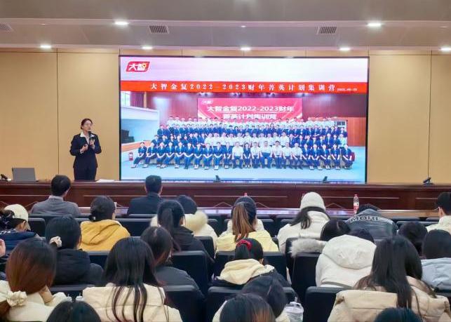 会议伊始,巩磊介绍了与会嘉宾与会议流程。随后,贾琦通过企业宣传片和PPT,向毕业生们详细介绍了公司的基本概况、发展前景以及成员晋升空间等内容,展示了大智教育培训公司雄厚的企业实力、完备的培训体系、良好的工作环境以及强大的师资力量。