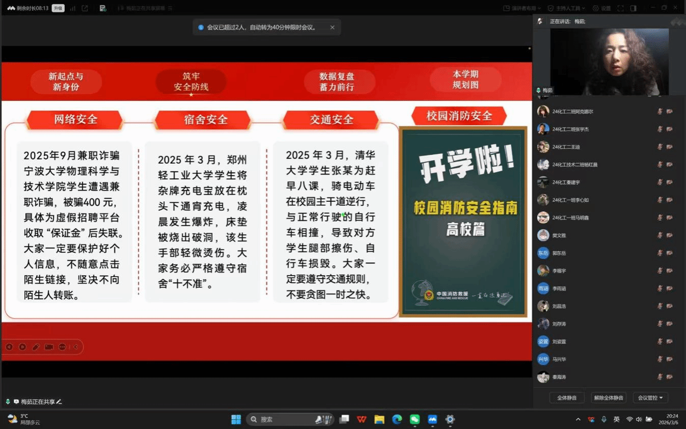 活动紧扣新学期学生成长发展核心需求,设置安全防护、学业指导、心理调适等多维赋能模块,为学生送上暖心成长“大礼包”。班主任结合典型诈骗案例,围绕网络安全、交通安全、食品安全、宿舍安全等关键要点细致讲解,切实提升学生自我保护意识与防范能力。活动坚持分年级、分专业精准施策,为各学段学生梳理学业重点、明晰发展方向,助力学生科学规划学业生涯。同时聚焦春季学生心理特点,引导学生正视压力、主动调适、积极求助,以阳光心态和昂扬状态开启新学期。