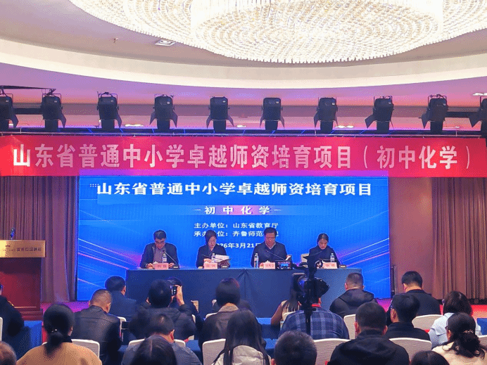 3月21日,由山东省教育厅主办、齐鲁师范学院承办的山东省普通中小学卓越师资培育项目(初中化学)培训班在济南正式开班,来自全省各地的101位初中化学教师齐聚泉城济南,开启专业研修提升之旅。山东省教育科学研究院教育发展战略研究中心主任、研究员宫珂,校长郑秀文,学院副院长、首席专家张艳等出席开班仪式,仪式由学院党委书记巩磊主持。