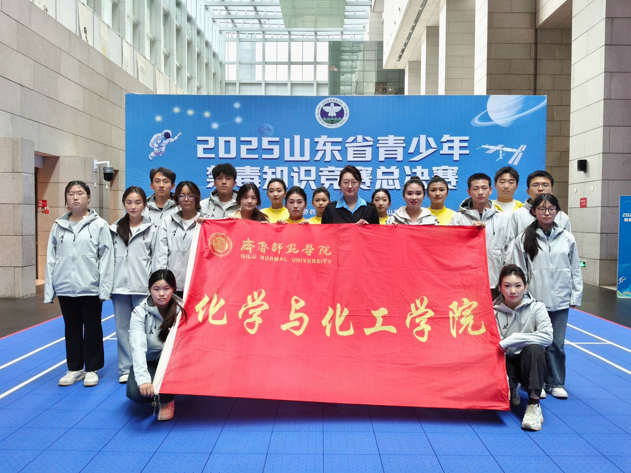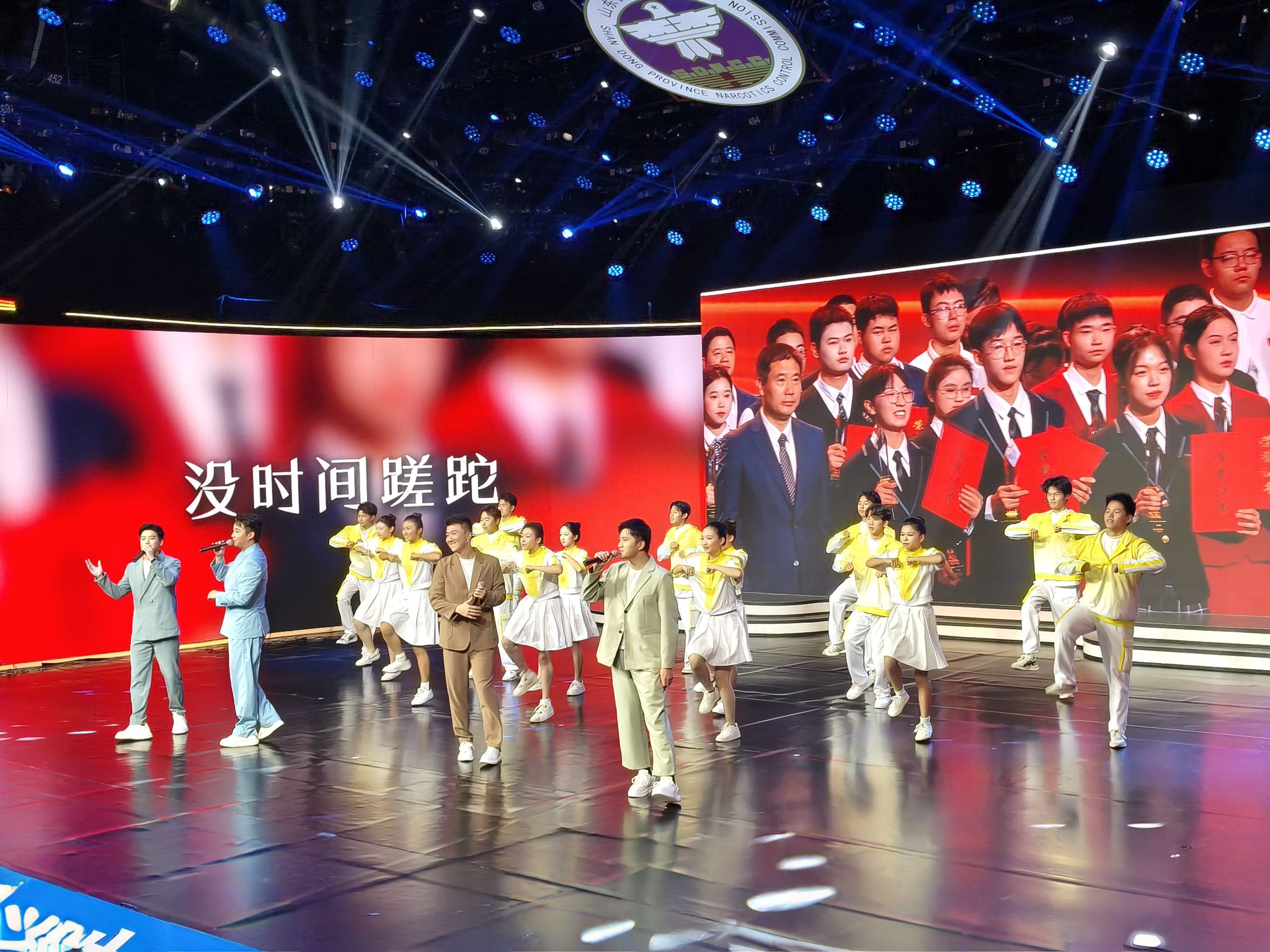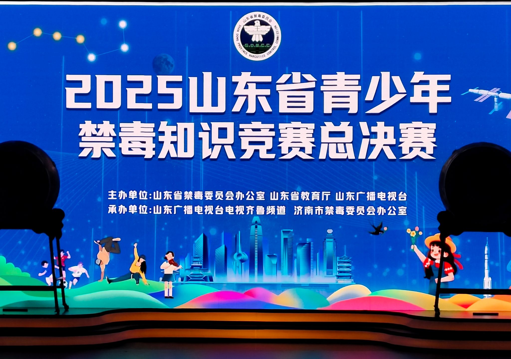 为深入贯彻落实习近平总书记关于禁毒工作的重要指示精神,持续巩固青少年毒品预防教育成果,10月11日,由山东省禁毒委员会办公室、山东省教育厅、山东广播电视台主办,山东广播电视台电视齐鲁频道、济南市禁毒委员会办公室承办的2025年山东省青少年禁毒知识竞赛总决赛在济南举办。总决赛以“青春无毒,阳光一生”为主题,学院受邀参加部分节目演出。学院以党建带团建的方式,将党性教育与禁毒宣传深度融合,通过艺术化表达传递禁毒正能量,推动禁毒教育从校园课堂走向更广阔的社会传播空间,在润物无声中传递禁毒理念。
