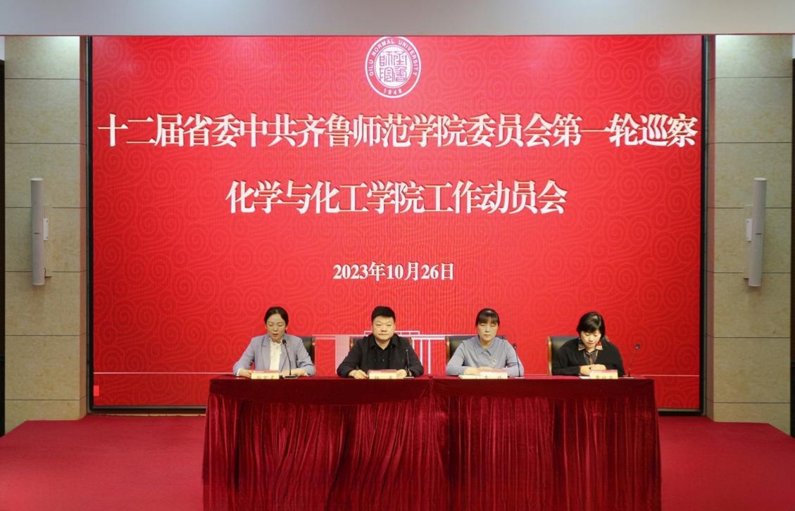 根据学校党委第一轮校内巡察工作的部署安排,10月26日下午,十二届省委齐鲁师范学院党委第一轮巡察化学与化工学院党委工作动员会在章丘校区第一学术报告厅召开。学校党委委员、组织部部长、巡察工作办公室主任杨磊,学校党委第二巡察组全体成员、化学与化工学院党委领导班子成员、各党支部书记、行政人员、全体教师参加会议。学院党委书记郭百灵主持会议。