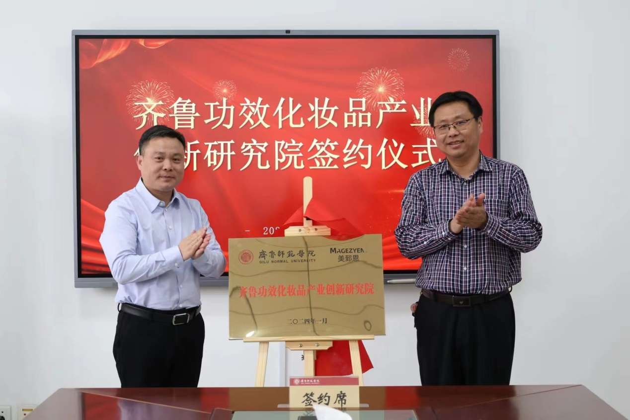 为积极推进校企合作,深入实施科教融汇,4月22日下午,齐鲁功效化妆品产业创新研究院签约暨化妆品研究院第一次工作会议在齐鲁师范学院成功举办。学校党委副书记、校长郑秀文,美郅恩(上海)生物科技有限公司总经理、特聘教授王勇出席会议。会议由化学与化工学院院长曹晓荣主持。