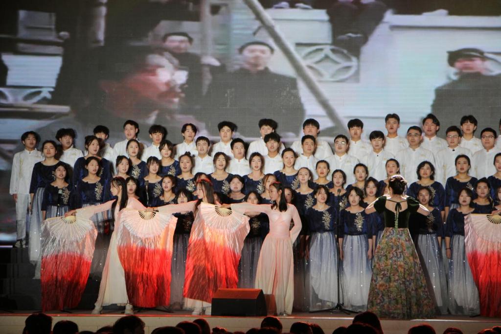 山河披锦绣,盛世谱华章。本次主题党日活动以大合唱的形式开展,师生共同演绎了《追寻》和《歌声与微笑》两首歌曲,合唱与朗诵、舞蹈、情景剧结合在一起,形式新颖独特,令人耳目一新。每一句歌词都承载着学院师生对党的深情厚谊,每一个音符都跳跃着他们对祖国的无限祝福,表达了对历史的敬畏、先辈的敬仰、美好生活的歌颂与向往,增强了师生的爱国情怀与民族自豪感。