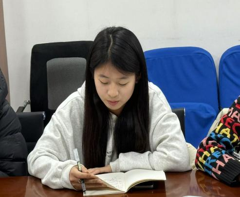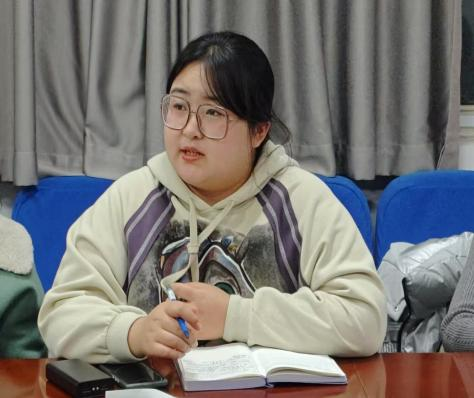 2024级化学(师范类)一班的毛昊阳为本期主讲人,她从“教育强国”的内涵与意义出发,结合党的二十大报告和北京航空航天大学教授桂海潮及武警排长高占喜的生动事迹,讲述了自己的学习体会和内心感受,表示要以自己的实际行动向优秀榜样学习。随后,各位团支书积极参与交流讨论,分享学习感悟。