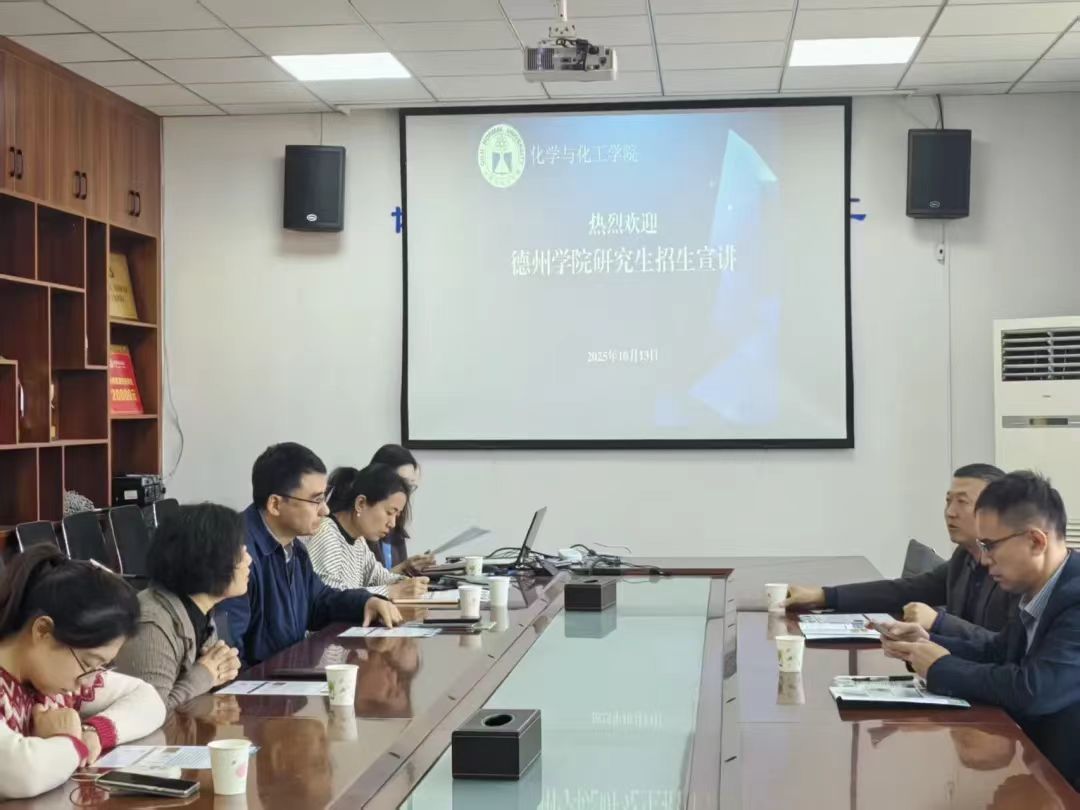 为落实立德树人根本任务,推进学风建设走深走实,学院聚焦学生考研迫切需求,系统构建科学备考体系,推动育人工作与升学服务精准对接,切实为学生考研备考提供全方位保障,10月13日,学院邀请德州学院化学化工学院于二号实验楼B310学院会议室开展研究生招生宣讲。德州学院化学化工学院党委副书记于怀敬、化学化工实验中心主任孙建之,学院院长曹晓荣、党委书记巩磊、党委副书记梅茹、团总支书记杨睿、毕业班辅导员出席,2026、2027届考研学生参加活动。