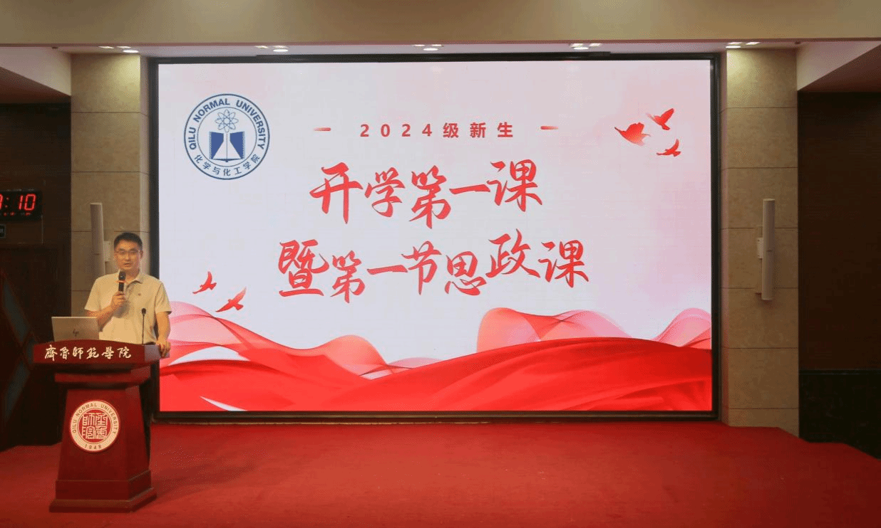 2024级班主任朱立伟作为教师代表发言。他指出,大学是掌握人生主动权的起点,鼓励新生们珍惜时光,警惕“躺平”心态,合理规划大学生活。同时,他向同学们分享学院毕业生多样发展道路,以化学合成为喻,强调关于选择与梦想的重要性,激励新生们感受化学之美,探索知识边界,勇敢追逐梦想。