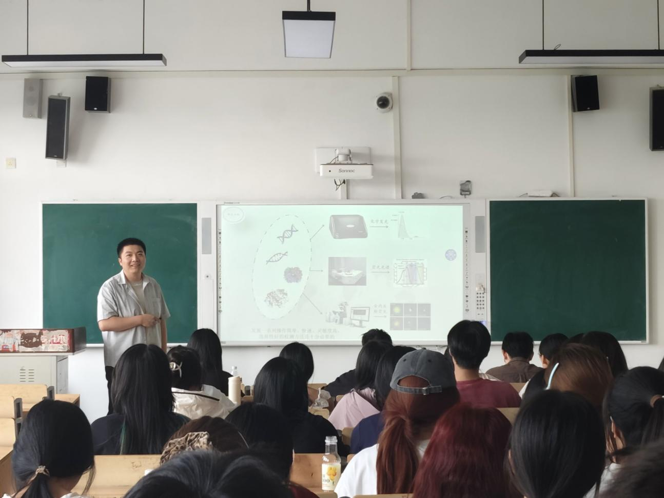 讲座中,姜苏首先阐释表观遗传的定义。接着,他介绍表观遗传生物标志物的研究背景与意义,并详细讲解癌症相关标志物。随后,姜苏分析传统检测方法的不足,指出开发新型分析方法的必要性和迫切性。在此基础上,他分享了自己在表观遗传检测领域的研究见解,并介绍其发表于 SCI 论文中的超灵敏检测方法。针对这些检测方法,姜苏进一步剖析了技术创新点,阐释其具备的高特异性、高灵敏度及功能显著性等核心优势,同时结合实际案例说明方法在样品分析中的应用价值。最后,姜苏强调,希望通过本次讲座帮助同学们系统认识表观遗传生物标志物超灵敏检测研究,拓宽分析化学与生命科学交叉领域的学术视野,激发对前沿科研问题的探索热情,为相关领域的学术研究提供新的思路与启示。