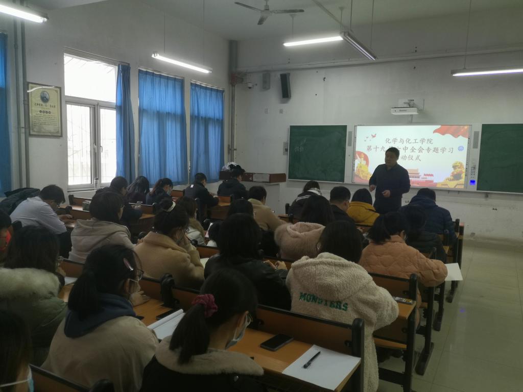 11月25日下午,化学与化工学院举办党的十九届六中全会精神专题学习会。会议由学院党总支副书记张帜主持,学院全体党员及部分入党积极分子代表参会。