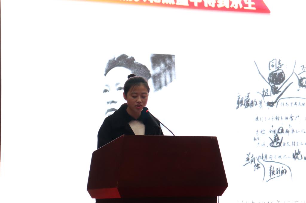 然后,新生代表赵睿哲作为新生代表发表了感想。她说道,在我们是共青团员时,中国共产主义青年团就给予了我们积极的引导;现如今,中国共产党又给予了我们先进的思想感召,我们定会义无反顾成为其中一员。