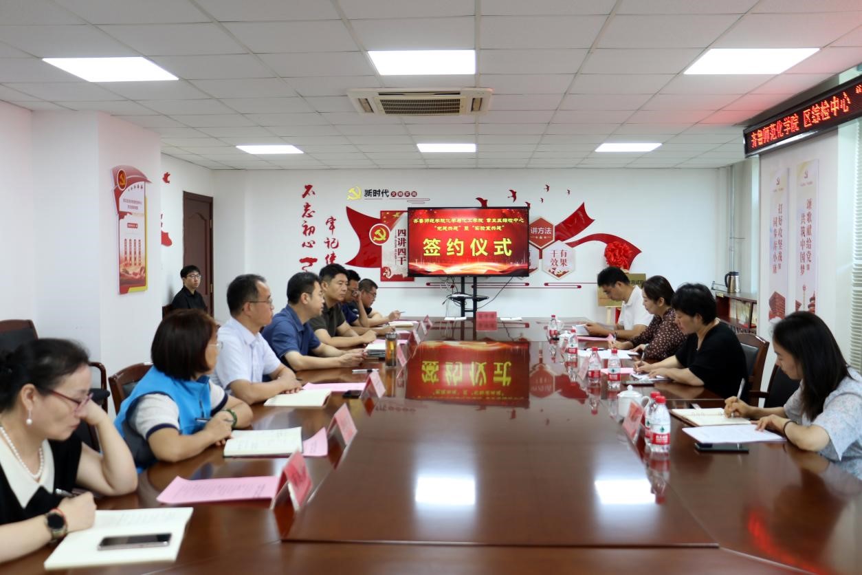 为了深入贯彻党的二十大精神和扎实开展学习贯彻习近平新时代中国特色社会主义思想主题教育,全面推进基层服务型党组织建设,更好地为地方经济建设和社会发展服务,近日,学院与章丘区综检中心开展“党建共建”暨“实验室共建”活动。学院党委书记郭百灵,党委副书记、院长曹晓荣,党委副书记巩磊,副院长张旭雪;章丘区综检中心党组书记、主任张鹏,章丘区综合检验检测中心中层干部人员参加签约仪式。