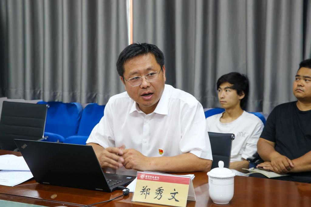 6月16日下午,校长郑秀文在2号实验楼B310会议室,为学院师生党员代表讲授“深学细悟中央八项规定精神,筑牢新时代党的作风建设根基”专题党课。学院教师第三党支部和学生第二党支部师生党员、近三年新进教师参加,学院党委书记巩磊主持。
