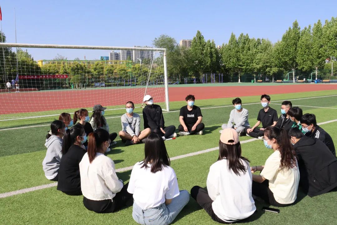 接力结束后,同学们围坐在操场上分享青年榜样的故事。他们分别讲述了共和国勋章获得者孙家栋、“两弹一星”功臣王淦昌、雪域高原上的戍边卫士陈祥榕、航天英雄王亚平、奥运健儿武大靖等不同时代、不同角色、不同行业的优秀青年励志故事;在互动交流中分享了革命先辈的英雄岁月与当代青年在保家卫国、航空航天、疫情防控、学术科研等领域的闪光事迹,展现出了青年人在平凡岗位上奋斗奉献,在担当时代责任中走在前列的精神风貌,充分感受党和国家对青年的关心关爱。