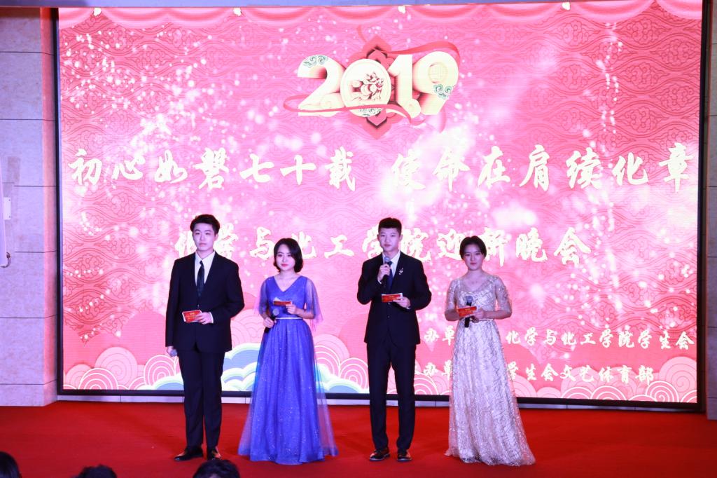 2019年12月24日晚18:30,我院在图书馆学术报告厅举办了以“初心如磬七十载,使命在肩续‘化’章”为主题的迎新晚会。我院院长曹晓荣,团总支副书记杨睿、部分教师代表和2019级全体新生观看了本次晚会。