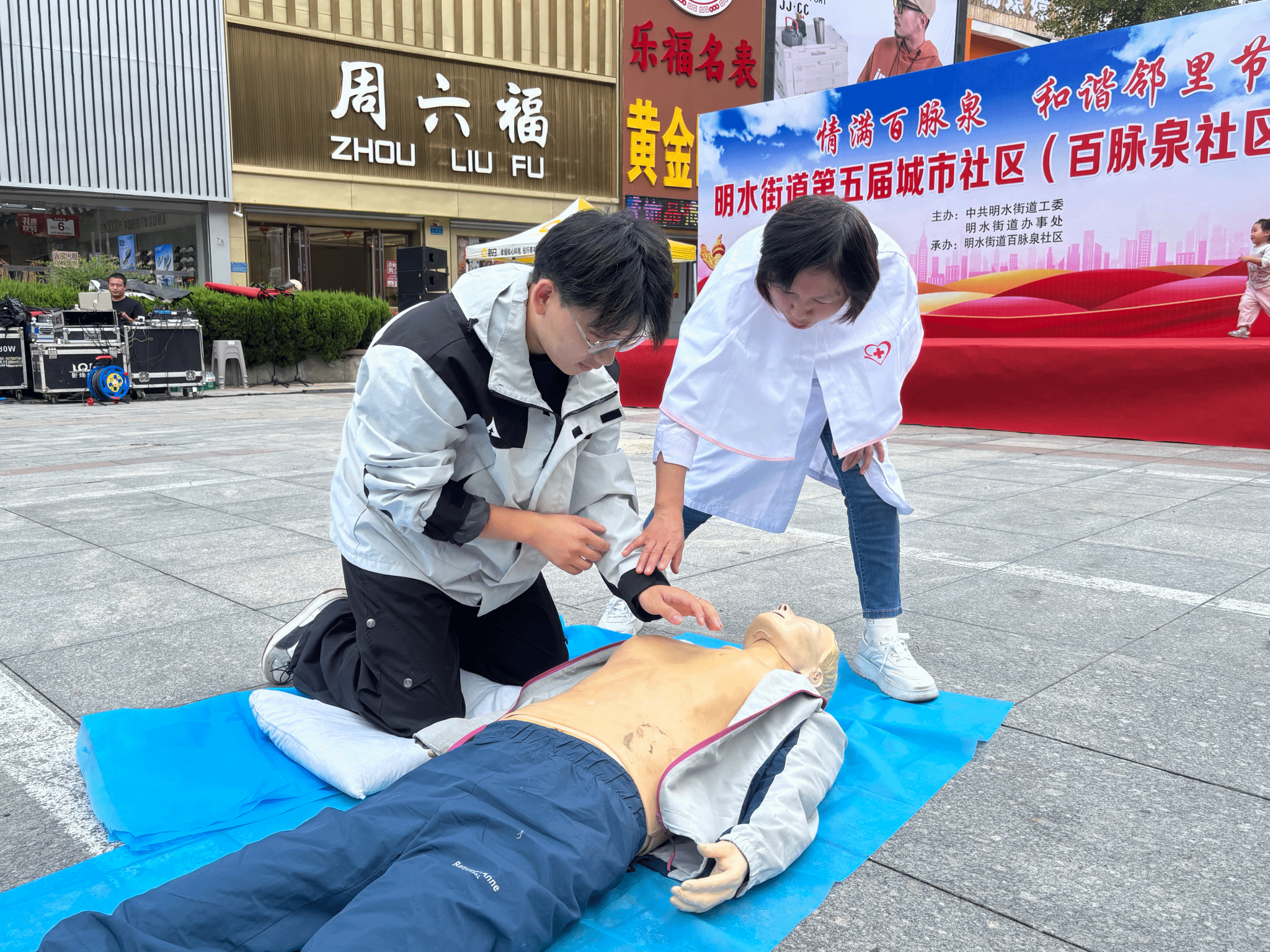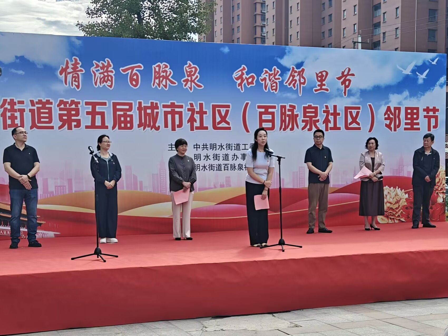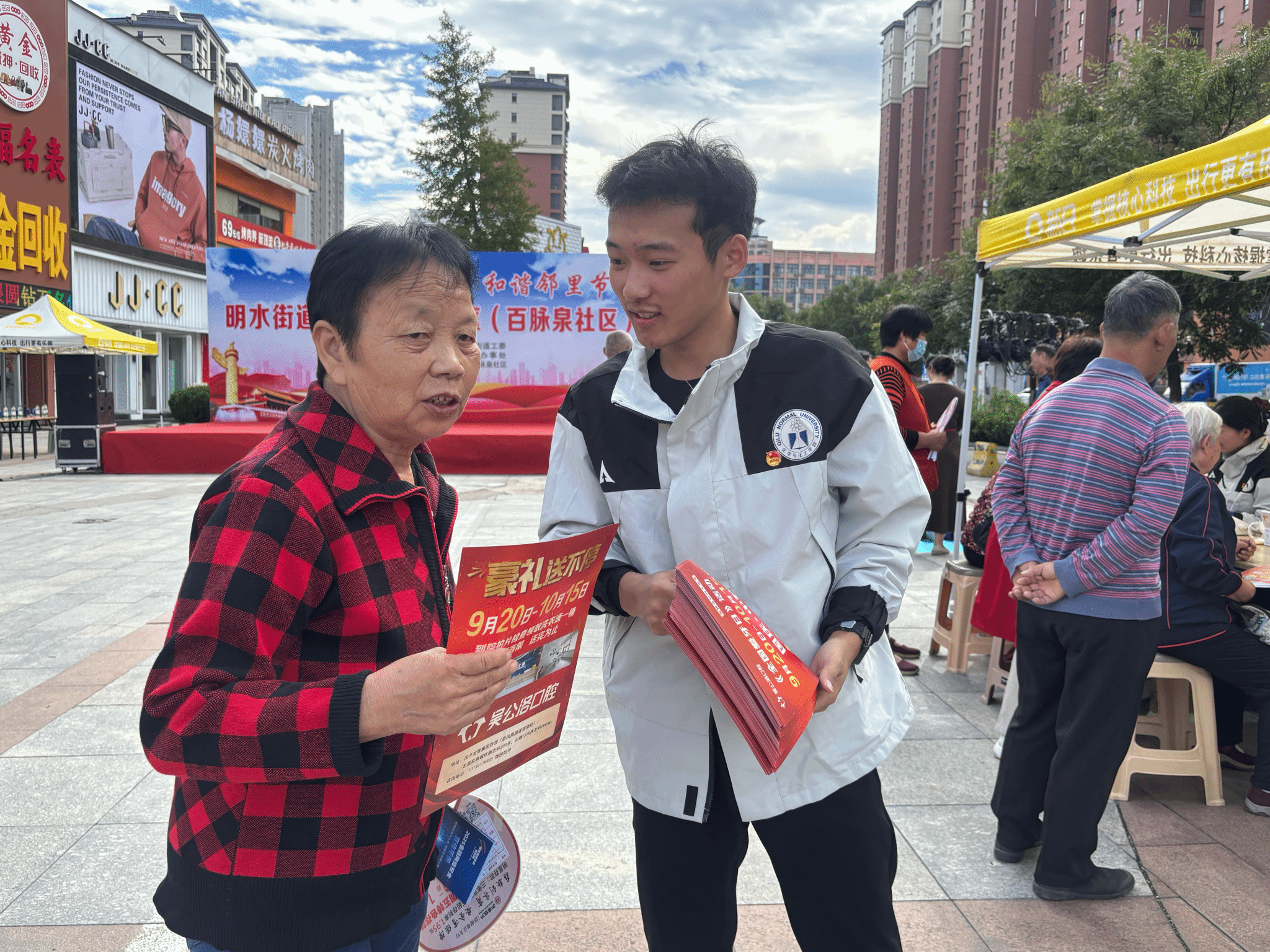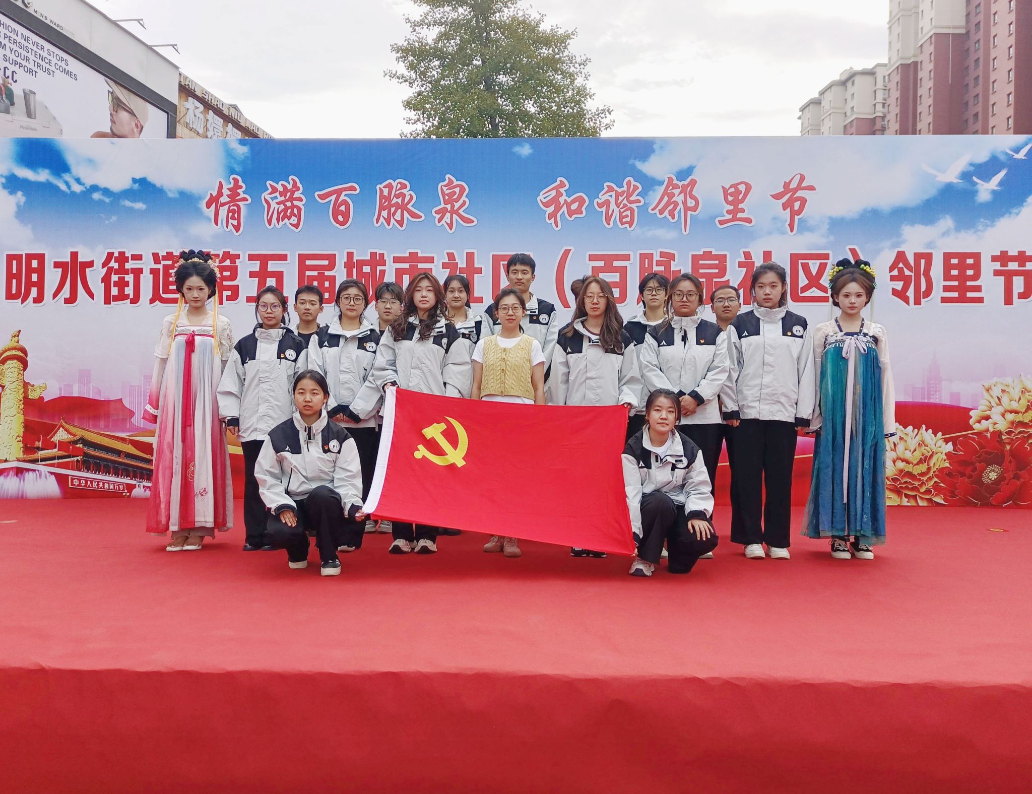 为拓宽高校实践育人路径,积极响应山东省“百万大学生进社区”社会实践活动的号召,增强大学生服务基层的意识和能力,9月26日,学院组织学生志愿者前往学校“双报到”单位、学院“百万大学生进社区”社会实践基地章丘百脉泉社区,以党建带团建的方式参加明水街道第五届城市社区(百脉泉社区)邻里节各项活动。