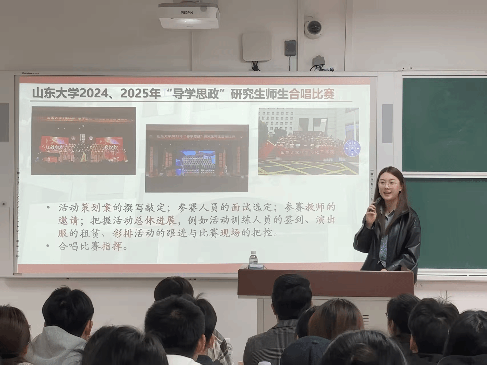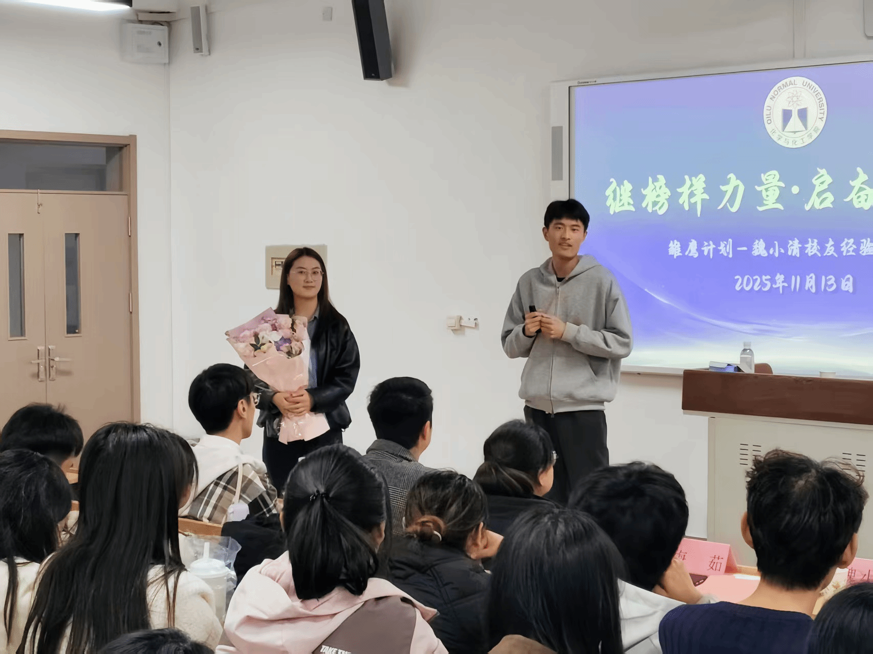 为帮助学生精进工作方法、增强责任担当与综合素养,助力高效履职与成长成才,学院于11月13日在一号教学楼A109举办“雏鹰计划”之魏小清校友经验分享会。本次活动以“继榜样力量,启奋进新程”为主题,特邀2024届优秀校友、现山东大学硕士研究生魏小清作经验分享,学院党委副书记梅茹、团总支书记杨睿、全体辅导员及学生干部代表参加。活动由2024级化妆品技术与工程一班金炫炫主持。