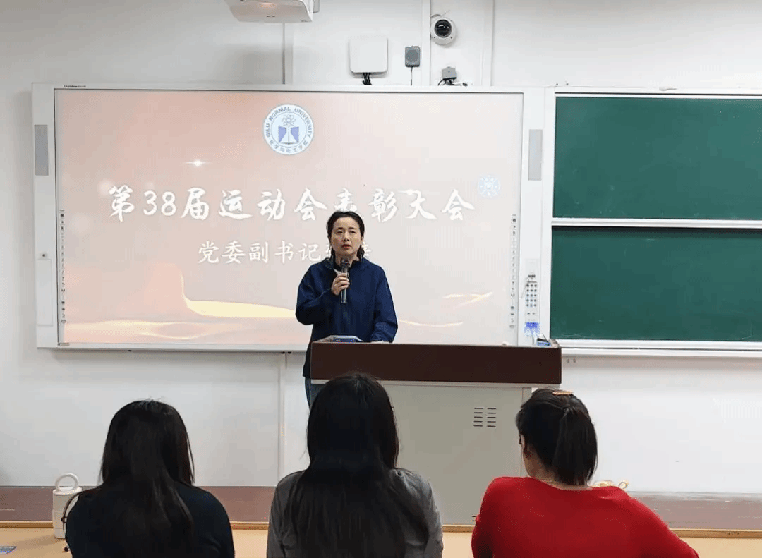 最后,学院党委副书记梅茹发表讲话。她首先向所有获奖个人与集体表示热烈祝贺,向为运动会辛勤付出的师生们表示衷心感谢。她强调,运动会不仅是竞技的舞台,更是展现学院师生精神风貌的窗口,赛场上的拼搏、协作、奉献精神,正是学院精神的生动体现。她希望全体同学能将这份精神延续到学习、工作与生活中,以更昂扬的姿态迎接未来挑战,共同为学院发展注入新动能。