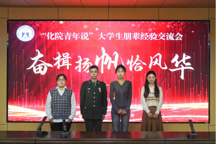 为贯彻落实OBE教育理念,丰富第二课堂活动建设,充分发挥优秀学生的示范引领作用,持续开展“我为同学做实事”主题实践活动,第十五期“化院青年说”大学生朋辈经验交流会于10月17日下午在二号教学楼A111举行。本次活动以“奋楫扬帆恰风华”为主题,邀请了高梦璇、崔雅文、刘旭、石晓彤四位优秀学生代表分享经验,学院部分学生参加了活动。交流会由沙怡宁主持。