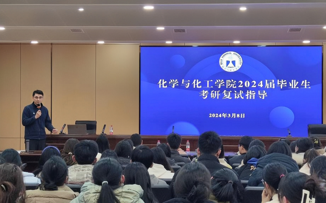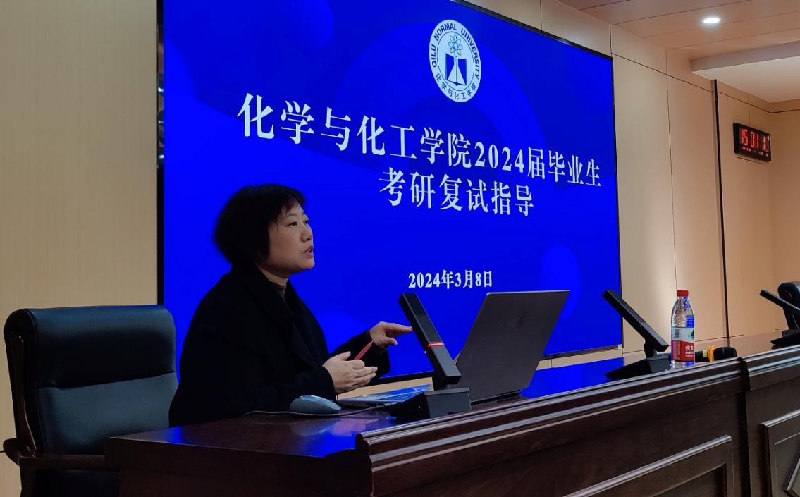 为扎实推进2024届考研学生的复试工作,精准助力考研学子了解复试流程、理清备战思路、掌握面试技巧,我为师生办实事,学院于3月8日14点在第二学术报告厅举行2024届毕业生考研复试指导。化学与化工学院党委书记郭百灵,院长曹晓荣,党委副书记巩磊,外国语学院博士、副教授刘莉,化学与化工学院2023届毕业生、山东大学化学专业研究生杨琳,全体辅导员,2024届毕业班班主任与考研学生参加本次活动。活动由化学与化工学院团总支书记杨睿主持。