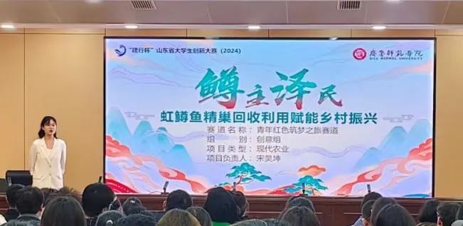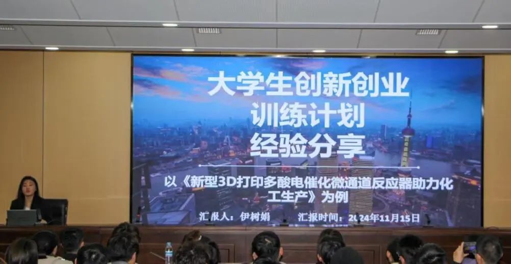 “创新无止境,团队共前行。”宋昊坤为同学们分享参加山东省大学生创新大赛的经历,她从项目选题、研究过程、团队合作三个方面进行讲解,强调创新精神与团队合作的重要性,鼓励同学们积极参与到创新活动中来,为未来的创业与职业发展做好准备。