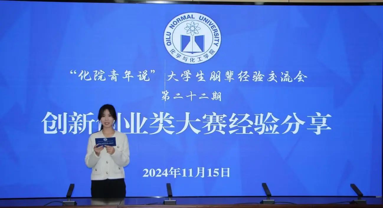 为激发学生创新创业热情,充分发挥优秀学生的示范引领作用,持续开展“博学笃志”学风建设月系列活动,11月15日晚上,学院在第二学术报告厅举行第二十二期“化院青年说”大学生朋辈经验交流会。本次交流会以“创新创业类大赛经验分享”为主题,团总支书记杨睿、辅导员王鲁豫现场观摩,学生会双创部负责人黄丽君做赛事介绍,五位优秀创新项目学生代表宋昊坤、陈慧琳、伊树娟、辛程、栗敏为同学们做经验分享。交流会由2024级化学本科二班付康月主持。