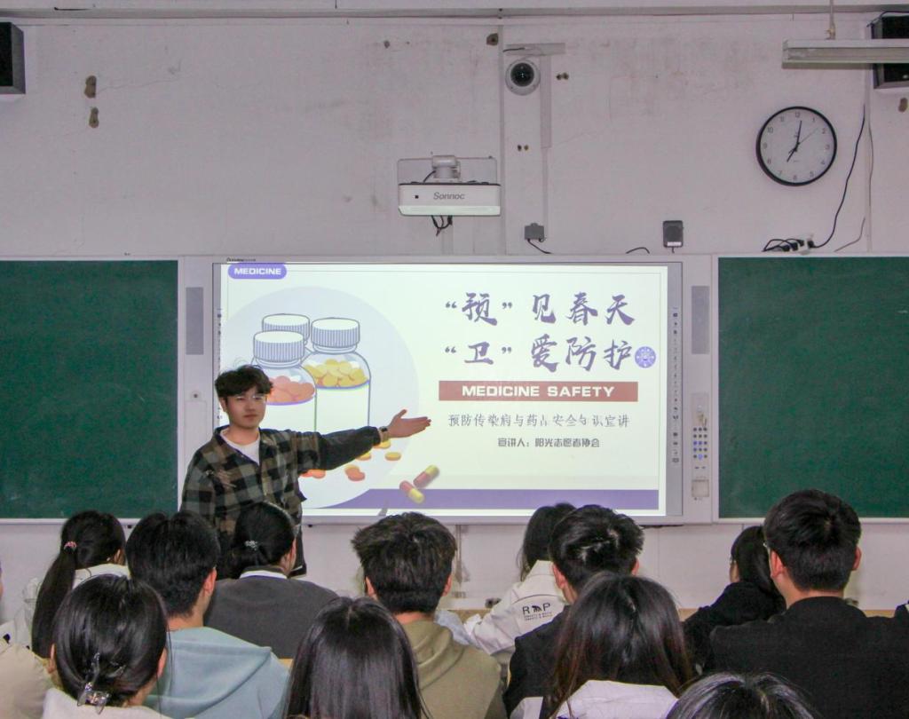 春季气温回升,各种传染病进入高发期,为提高学生的健康意识,掌握有效的预防措施,阳光志愿者协会面向学院学生开展“‘预’见春天·‘卫’爱防护”预防春季传染病知识讲座。主讲人通过数据图表与3D动画生动解析传染病的传播趋势,现场手把手教学“七步洗手法”,详解消毒液科学配比及宿舍通风要点;以感冒药、退烧药为例,用“一查二对三问”口诀指导学生规范用药,强化学生安全认知。活动现场,同学们争相分享“消毒液调兑口诀”等实用妙招,并踊跃参与知识问答。此次宣讲将专业知识转化为生活化服务,彰显出阳光志愿者协会“干一行钻一行”的爱业初心,以“手把手教洗手”“面对面解惑”的温情实践,让雷锋精神推动志愿服务生动化。