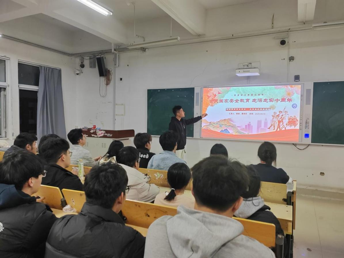 为深入贯彻落实总体国家安全观,进一步推动全民国家安全教育走深走实,强化学生国防观念,提高学生国家安全意识,4月13日,学院国防教育宣讲团于一号教学楼A501组织开展“全民国家安全教育,走深走实十周年”主题宣讲会,学院国防教育宣讲团成员、各年级学生代表参加本次活动。活动由学院国防教育宣讲团负责人黄德主持。