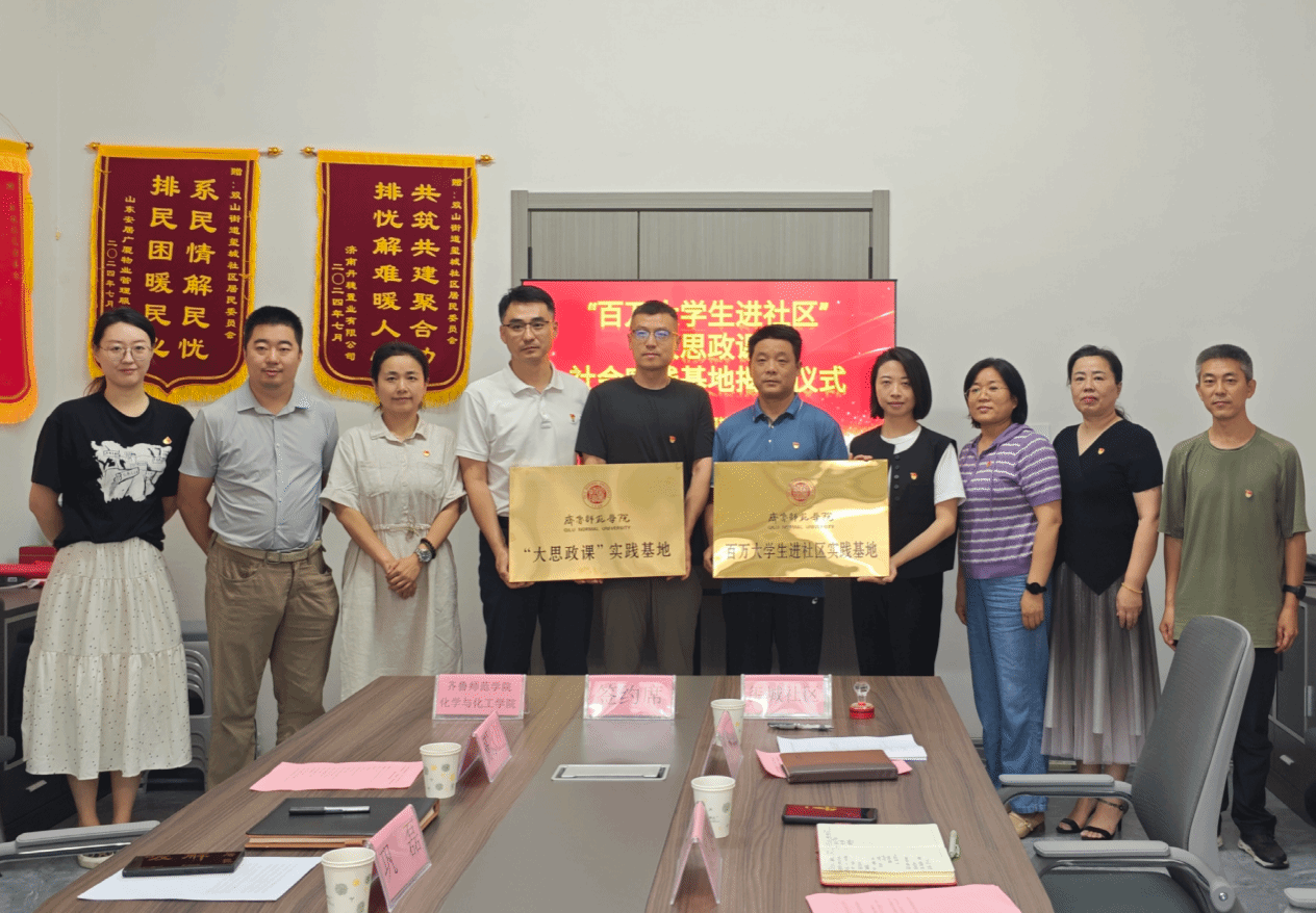为深入贯彻习近平总书记关于青年工作重要论述思想,巩固提升“百万大学生进社区”社会实践成效,引导青年学子深入基层,在服务中锤炼本领,创新思政教育模式,实现校地协同育人,7月15日,学院在章丘区双山街道玺城社区举办“百万大学生进社区”社会实践基地、“大思政课”实践基地签约揭牌仪式。双山街道、绣源河党建工作区党委书记李良春,玺城社区党建特派员王树青,双山街道玺城社区党总支书记孟娇、党总支副书记马天斌、韩宝玉;齐鲁师范学院校团委书记赵旭,学院党委书记巩磊、党委副书记梅茹,学院副院长、教师第三党支部副书记杨冰川,学生第一党支部书记董坤及学生代表出席活动。活动由马天斌主持。