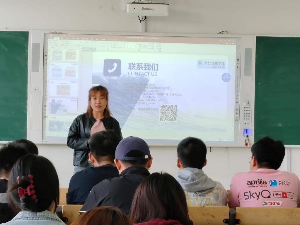 为贯彻落实学校关于毕业生就业工作的相关要求,扎实推进我院2023届毕业生就业工作,帮助毕业生及时全面地了解就业形势,帮助毕业生拓宽就业渠道,实现高效、精准、高质量就业,2023年4月26日14点30分,学院在一号教学楼A510教室举行促就业专项行动——山东化友水处理技术有限公司企业宣讲会。参加本次宣讲会的有山东化友水处理技术有限公司王总和杨总,辅导员李钰茜,以及2023届部分毕业生。本次宣讲会由李钰茜主持。
