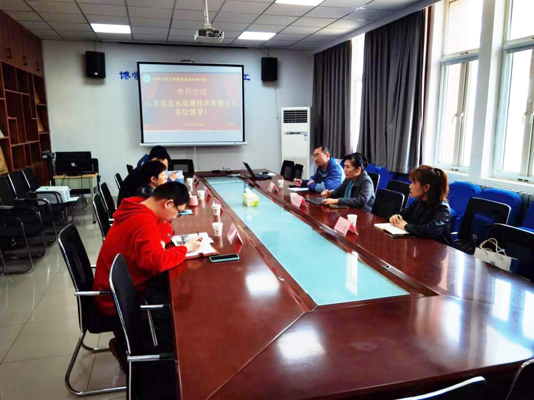 为贯彻落实党中央、国务院“稳就业”“保就业”的决策部署,推进“访企拓岗促就业”专项行动,深化校企合作、产教融合,进一步提升学生生涯规划水平、增强实习就业意识,推动我院2023届毕业生高质量就业工作,3月29日,学院与山东化友水处理技术有限公司开展2023届毕业生就业座谈会。参加本次座谈会的有山东化友水处理技术有限公司 董事长段丽菊、董事长助理闫小娟、董事长助理王斌,学院院长曹晓荣、党委副书记巩磊、教师代表朱立伟博士和刘洋博士。
