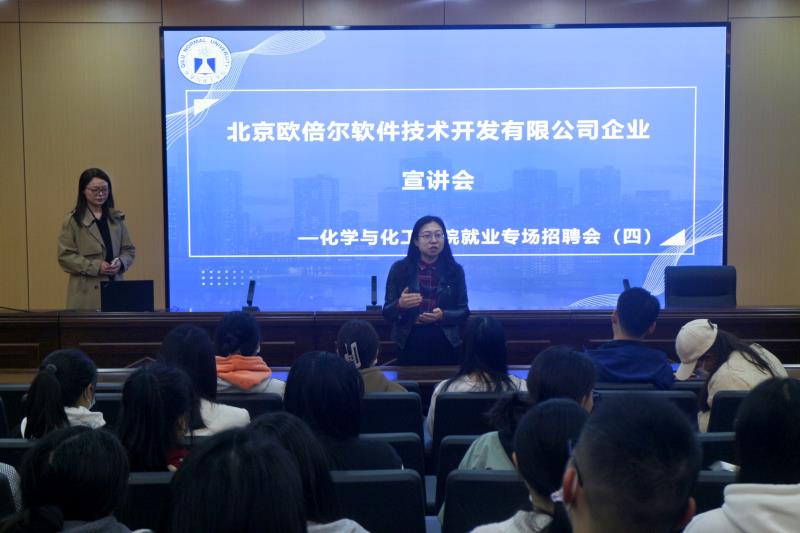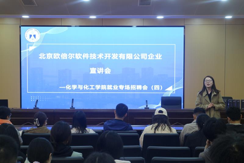 2023年3月22日,我院邀请北京欧倍尔软件技术开发有限公司在2号教学楼A111召开线下招聘宣讲会。北京欧倍尔是一家提供化学化工类模拟仿真软件服务的大型科技公司,参加本次会议的北京欧倍尔软件技术开发有限公司招聘负责人陈经理和仙部长、化学与化工学院党委副书记巩磊、团总支书记杨睿以及2019届毕业生。