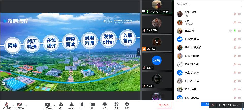 4月19日15:00,学院邀请鲁南制药集团人事部李军做专场招聘宣讲,毕业班辅导员杨睿、2022届毕业生参加了此次会议。