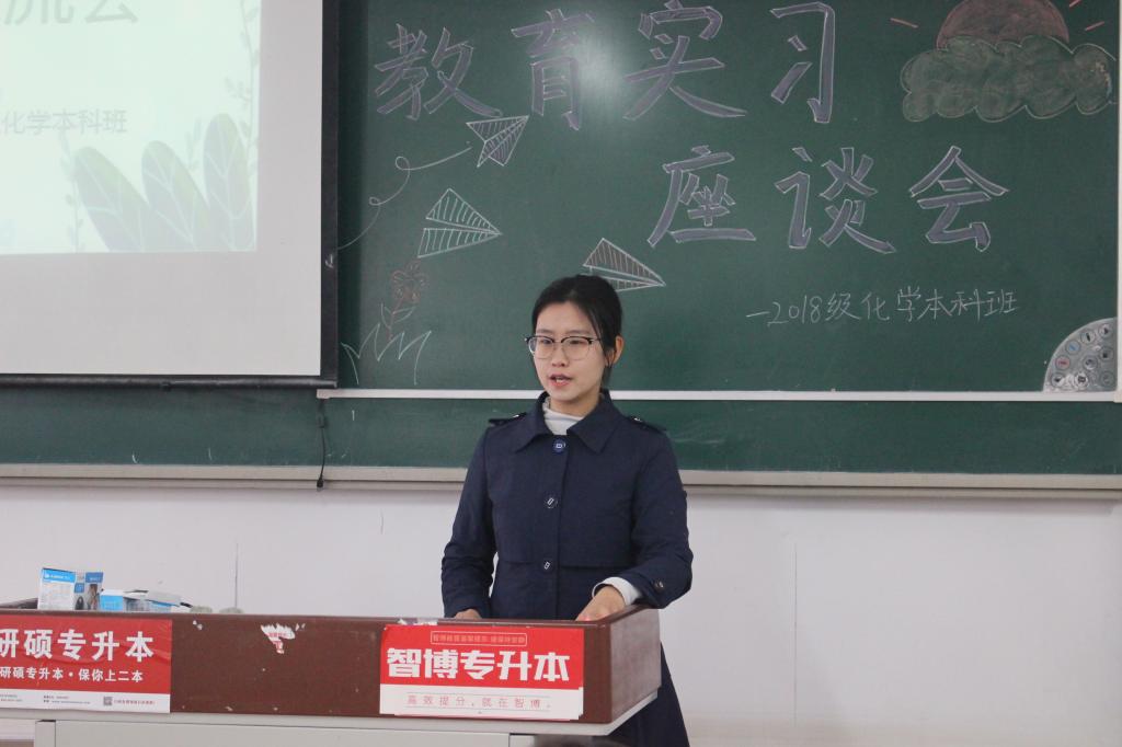 为进一步增强我院师范生的教育教学水平,更好的了解同学们的教育实习经历,2021年3月11日下午14:00,学院2018级化学本科班于二号教学楼A117教室举行了教育实习经验交流会。副院长刘新征、实习指导老师董丽花、高艳以及辅导员邹少爽莅临了本次交流会。