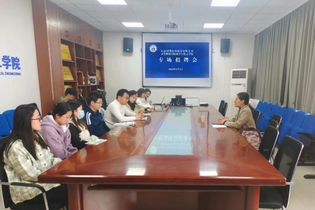 4月2日上午10点于学院会议室举行山东国茂医药科技有限公司线下招聘会。参加本次招聘会的有山东国茂医药科技有限公司人事经理赵丰霞、学院团总支书记杨睿、2024届毕业生。招聘会由杨睿主持。