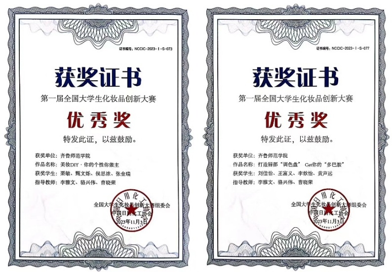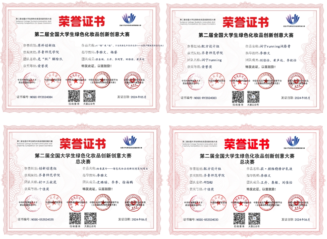 近年来,中心教师主持在研国家自然基金项目青年基金5项、省级项目14项、厅级项目2项;发表SCI论文100余篇,获得山东高等学校优秀科研成果奖1项、省级奖励5项;省级一流课程1门、省联盟共享课程1门;与国内57个省市400余家化妆品行业企业深度合作,近两年横向到账经费近800万元。中心已成功开发了多款具有创新性和市场潜力的化妆品产品,如玉米须植萃多效修护精华液、植萃柔护套装等。此外,中心在化妆品成分递送载体和原料研发方面也取得了显著成果,成功制备了多种高效、稳定的成分递送载体,并自主研发了玻色因、有机硅树脂微球等化妆品原料,为化妆品行业的创新与发展注入了新的活力。