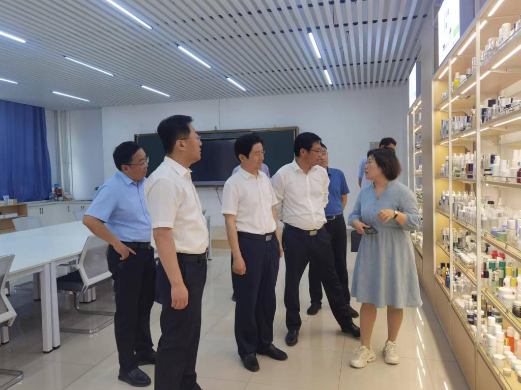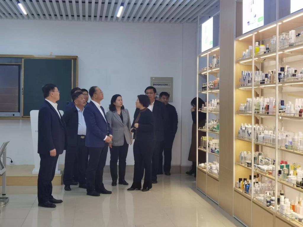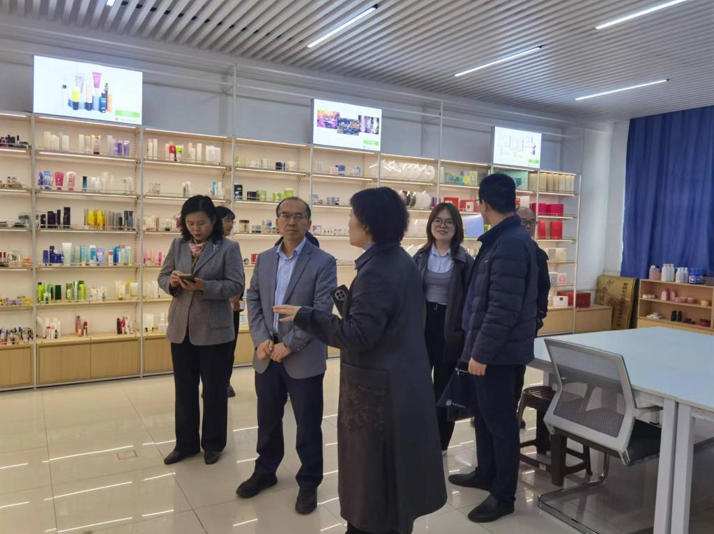 2024年4月29日,徐州工程学院材料与化学工程学院党委书记胡美丽、副院长庄文昌和陈艳、教研室主任吴琼和李钦堂莅临化妆品中心参观指导。