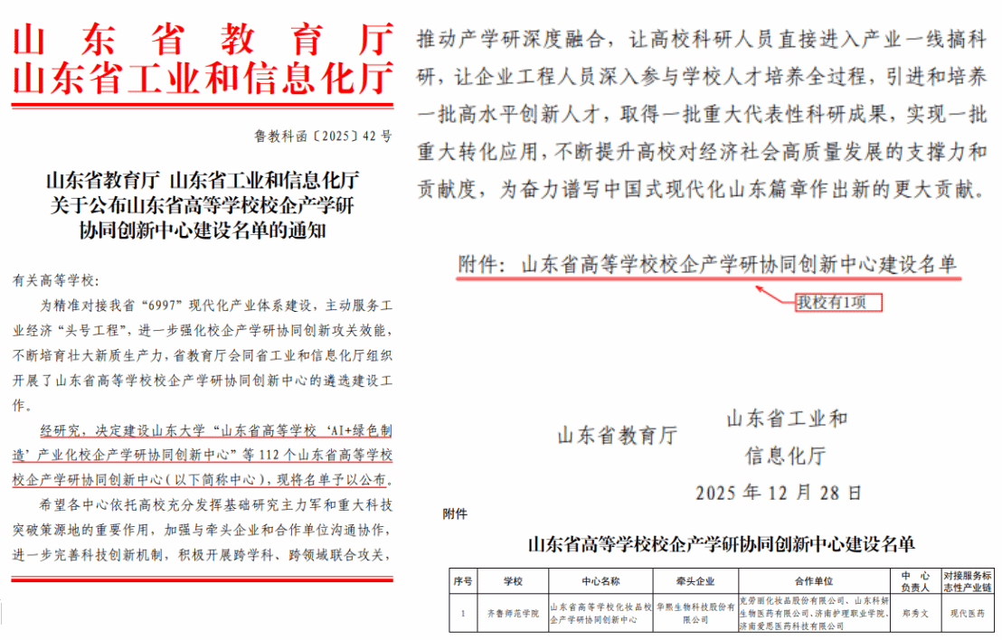 近日,山东省教育厅、山东省工业和信息化厅联合发布《关于公布山东省高等学校校企产学研协同创新中心建设名单的通知》,学院牵头申报的“山东省高等学校化妆品产学研协同创新中心”成功获批立项建设。