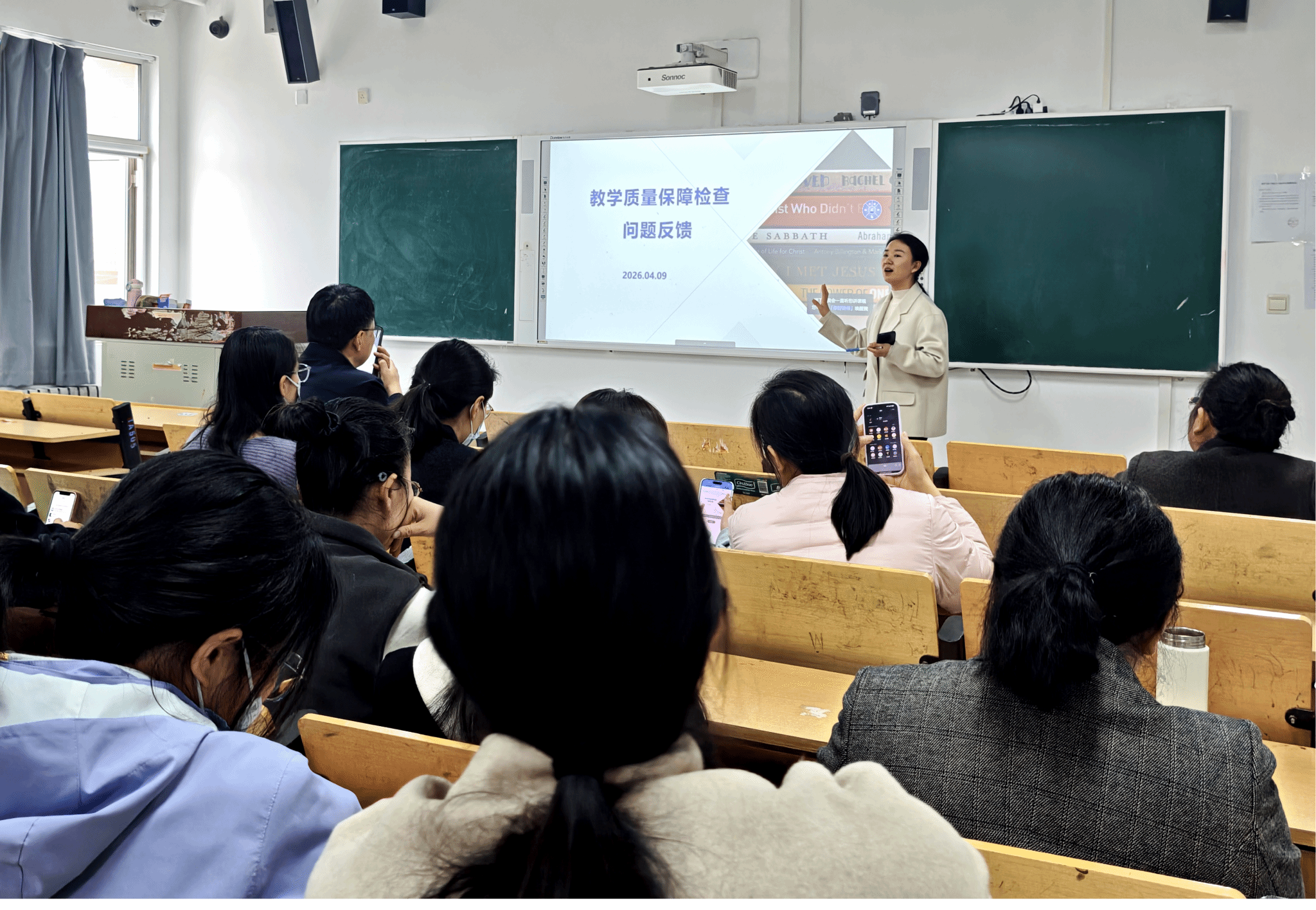 随后,张旭雪对照学院教学质量保障问题反馈清单,逐项通报检查发现的各类问题,严格落实“一对一责任到人”机制,并按“短期整改”“长期坚持”两大类别明确整改要求:一是针对青年教师教学基本功、教学材料规范、教学大纲优化、课程考核标准完善等即时性问题,要求相关教师立行立改、限期完成整改;二是围绕人才培养方案特色凝练、教学大纲编写、毕业论文质量提升、实习实践管理强化等长效性工作,明确阶段性整改目标,稳步持续推进。她强调,全体教师要压实整改责任,对照清单逐项销号,确保所有问题整改到位、取得实效。